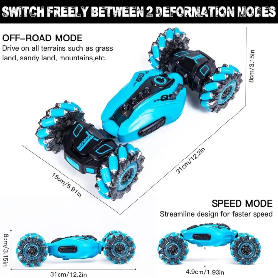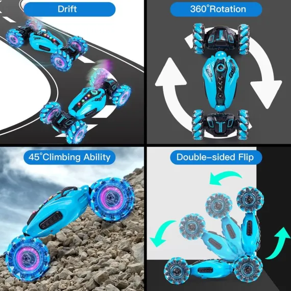Echipată cu lumini LED și efecte sonore, se transformă într-un adevărat show vizual, perfect pentru joacă atât ziua, cât și pe întuneric. Controlul este precis și ușor, astfel încât copiii pot executa stunt-uri uimitoare fără efort.