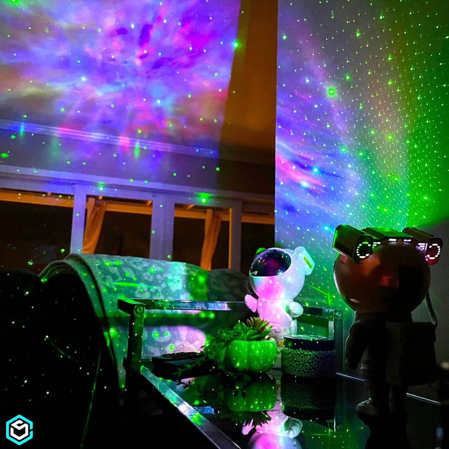 Proiectorul Laser LED Astronaut Starry Sky proiectează pe tavan și pereți o combinație uimitoare de stele, galaxii și culori hipnotizante — perfect pentru relaxare, somn, meditație, gaming sau petreceri.