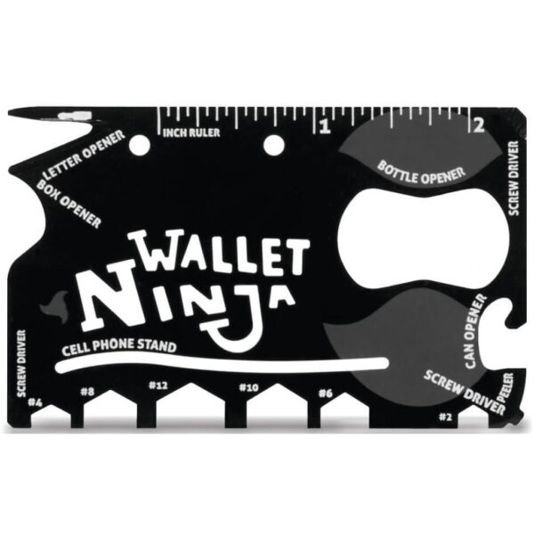 - Multifunctionalitate – 18 instrumente in 1 – Unealta ninja este instrumentul dumneavoastra de zi cu zi care se potriveste cu usurinta in portofel sau in buzunar. Un instrument multifunctional ce functioneaza ca surubelnita,deschizator de sticle, deschizator de cutii, deschizator de conserve, suport pentru telefon mobil, deschizator de bere, curatator de fructe, cheie hexagonala etc.
